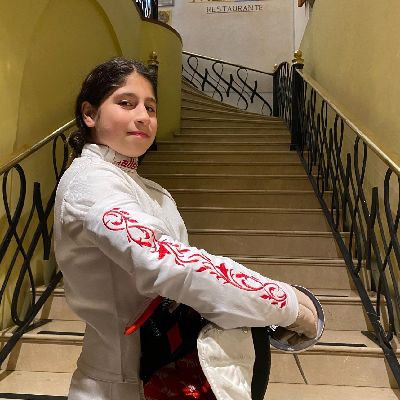 Nombre: Sarah Emilia Vinueza Burneo. Apodo: ‘Sarita’. Lugar y fecha de nacimiento: Quito, Ecuador. El 16 de septiembre del 2006. Club al que pertenece: Club Europeo de Quito. Arma: Florete. Orientación: Diestra.   TW: ¿A qué edad y quién te inspiró a iniciarte en esgrima? SV: Comencé a practicar esgrima a los 10 años por