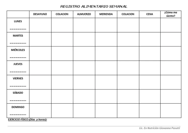 A continuación les mostraré como llenar una pauta de auto registro de alimentos y ejercicios diarios.